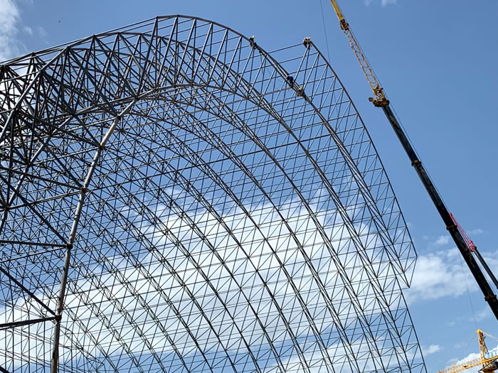 (2)网架加工前应对现场尺寸进行复测,确认无误后方可进行加工、安装;网架制作、运输、安装应遵守《空间网格结构技术规程》JGJ7-2010、《钢网架河津螺栓球节点》JG/T 10-2009、《钢网架河津螺栓球节点用高强度螺栓》 GB/T 16939-2016、《河津钢结构河津工程河津施工规范》 GB50755-2012、《河津钢结构河津工程施工质量验收标准》 GB50205-2020。